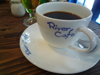 手描きの店名入りのカップ。コーヒーもドリップ式でいれてます。 |